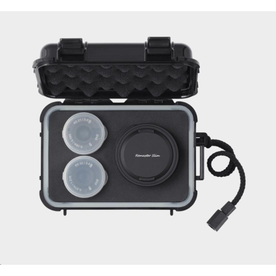 Remaster Slim je nový převratný modulární systém objektivů, který umožňuje uživatelům přepínat mezi třemi ohniskovými vzdálenostmi - 21 mm, 28 mm a 32 mm - pomocí jediného modulu objektivu, což je světové prvenství v technologii optického výměnného automatického zaostřování.