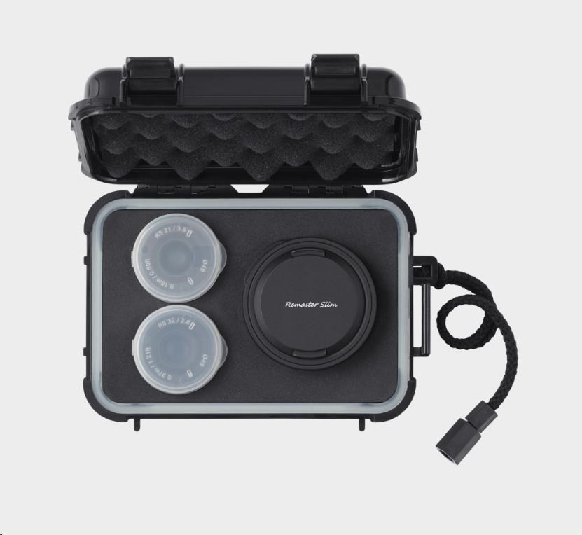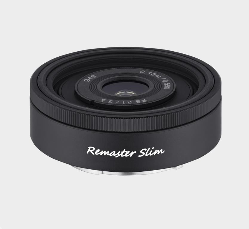 Remaster Slim je nový převratný modulární systém objektivů, který umožňuje uživatelům přepínat mezi třemi ohniskovými vzdálenostmi - 21 mm, 28 mm a 32 mm - pomocí jediného modulu objektivu, což je světové prvenství v technologii optického výměnného automatického zaostřování.
