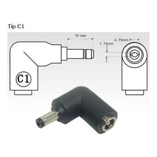 • Výstup: C1 (4,8mm x 1,7mm) vhodné pro notebooky Asus, HP, LG, Sony