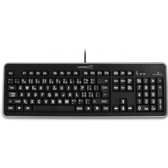 CONNECT IT Klávesnice CI-71 s LED podsvícením a VELKÝM fontem, USB