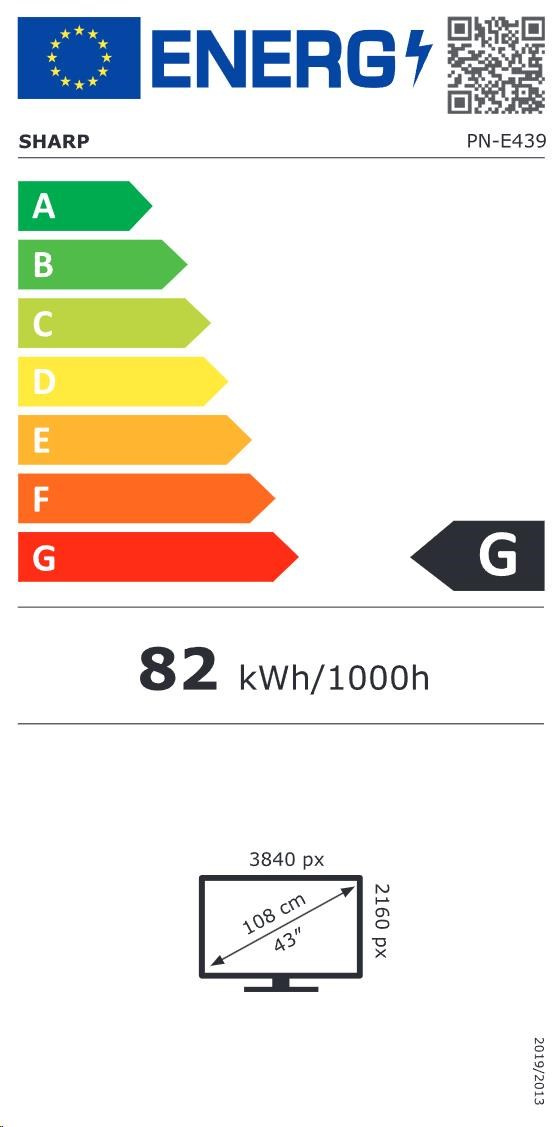 Energy Efficiency LED backlight; Spotřeba energie: 82 kWh/1000 provozních hodin; Třída energetické účinnosti: G