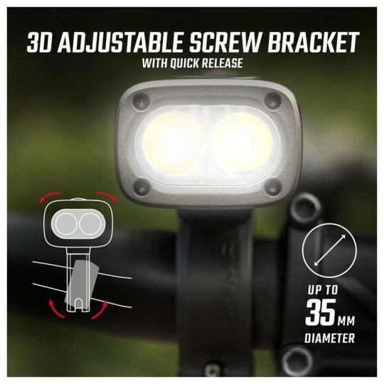 Buster 1600 se upevňuje na řídítkách pomocí šroubovacího držáku zcela bez nářadí. Podle potřeby lze světlo horizontálně i vertikálně vyrovnat a perfektně tak dosedne i na prohnutá řídítka. Rychlým uvolněním rychloupínáku můžete světlo rychle sundat z řídítek. Světlo Buster 1600 lze z držáku snadno sundat a znovu nasunout. SIGMA držák na řídítka je vhodný pro řidítka o průměru 22–35 mm.
