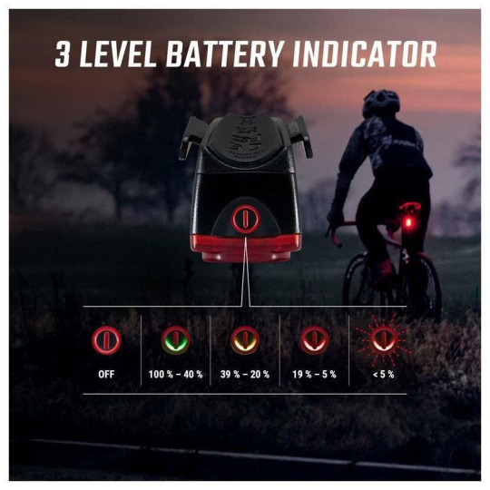 Stiskem ovládacího tlačítka se na třístupňovém indikátoru baterie zobrazí, kolik energie v baterii ještě zbývá. Lze tak v případě potřeby přepnout do úspornějšího světelného režimu.