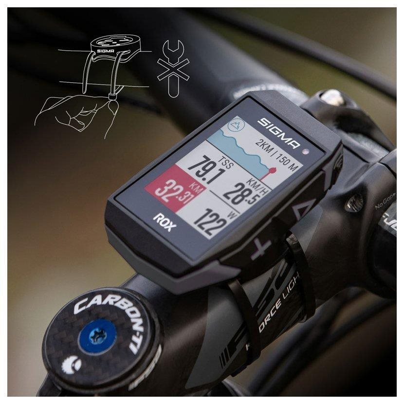 Držák lze během pár vteřin připevnit pomocí dvou kabelových pásků na řidítka nebo představec. Držák je vhodný pro celou řadu SIGMA ROX a lze jej připevnit na všechny typy řídítek.
