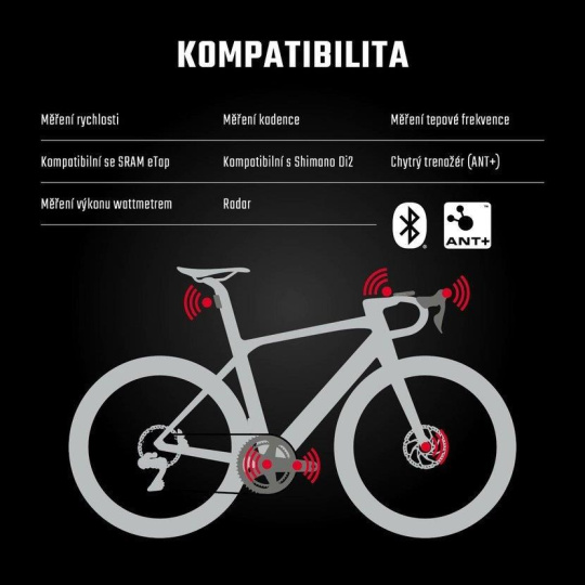 Konektivita: Bluetooth, ANT+, WiFi