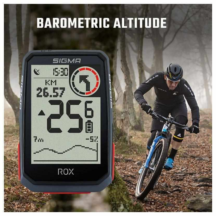 Opravdovým tahákem cyklopočítače ROX 4.0 je integrované barometrické čidlo. Díky barometrickému měření dodává cyklistům spolehlivé informace ohledně výšky, stoupání a klesání, a umožňuje tak přesný záznam trasy. Na cyklopočítači ROX 4.0 lze zobrazit i graf nadmořské výšky. Nadmořskou výšku na začátku trasy je možné kalibrovat automaticky pomocí GPS nebo manuálně.