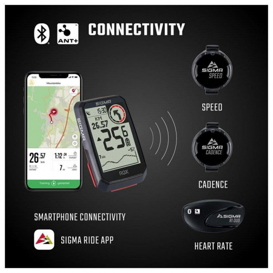 Kdo si přeje získávat ještě další nebo přesnější data, může díky funkcím ANT+ a Bluetooth připojit k ROX 4.0 také externí snímače jako jsou snímač rychlosti a snímač kadence.