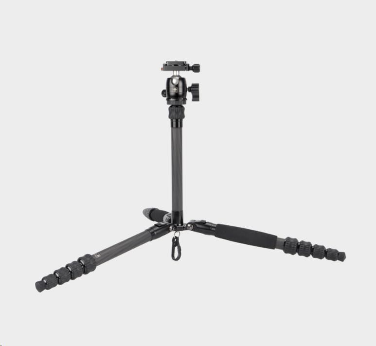 Lehký, kompaktní a přesto extrémně stabilní stativ z uhlíkových vláken s 5 sekcemi nohou a kulovou hlavou. Ideální na cestování.