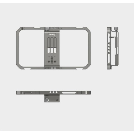Více otvorů se závitem 1/4 lze použít k upevnění stativu, jako je SmallRig Aluminium Mini Tripod 2429, horní rukojeti, jako je SmallRig Mini Top Handle for Lightweight Cameras (1/4"-20 Screws) 2821, boční rukojeti, jako je SmallRig Aluminium Side Handle for Smartphone Cage 2424.