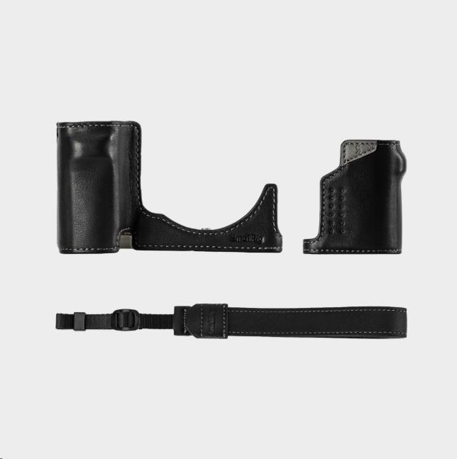 Součástí sady je navíc řemínek na zápěstí z pravé kůže pro pohodlnou a spolehlivou přepravu fotoaparátu.