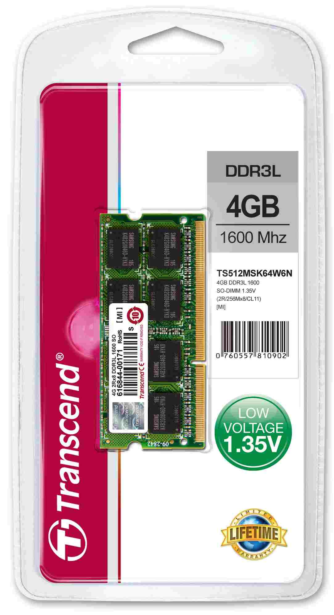 Small form-factor cases and slim notebook enclosures usually come hand-in-hand with tightly spaced components with limited room for heat dissipation. Transcend's DDR3 Low Voltage SO-DIMM operates at a nominal voltage of just 1.35V, which not only reduces heat production, but also reduces overall power consumption for compact low power mini-ITX systems and slim, power-efficient notebooks.