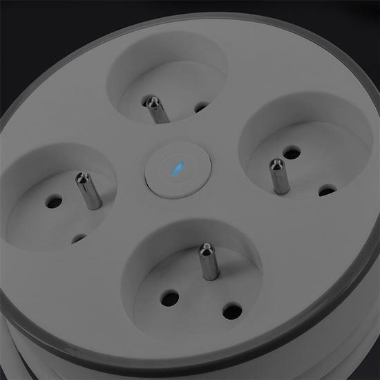 Prodlužovací přívod s kruhovým zásuvkovým polem pro domácnost i kancelář. Kabel je možné navinout na podstavec pro uschování nevyužité délky nebo navinout celý při skladování. Podstavec zajišťuje stabilitu a lze ho připevnit do pracovní desky nebo na stěnu díky montážnímu úchytu. Podsvětlený vypínač ovládá všechny zásuvky.
