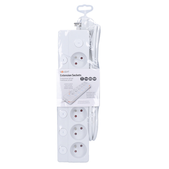 Solight 6z prodlužovací přívod, 3m, 3 x 1mm2, bílý, 6+1 vypínač