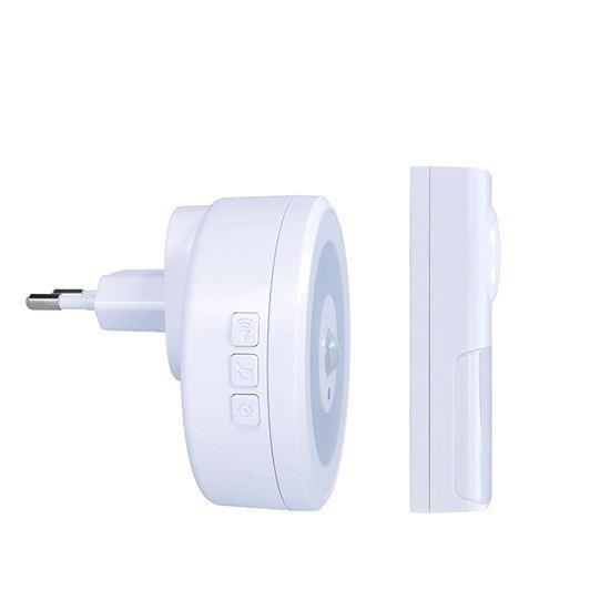 Solight bezdrátový zvonek s nočním světélkem na senzor pohybu, do zásuvky, 250m, bílý, learning code