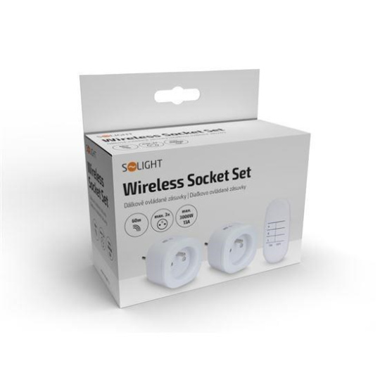 Solight dálkově ovládané zásuvky set 2 + 1, 2 zásuvky, 1 ovladač, learning code