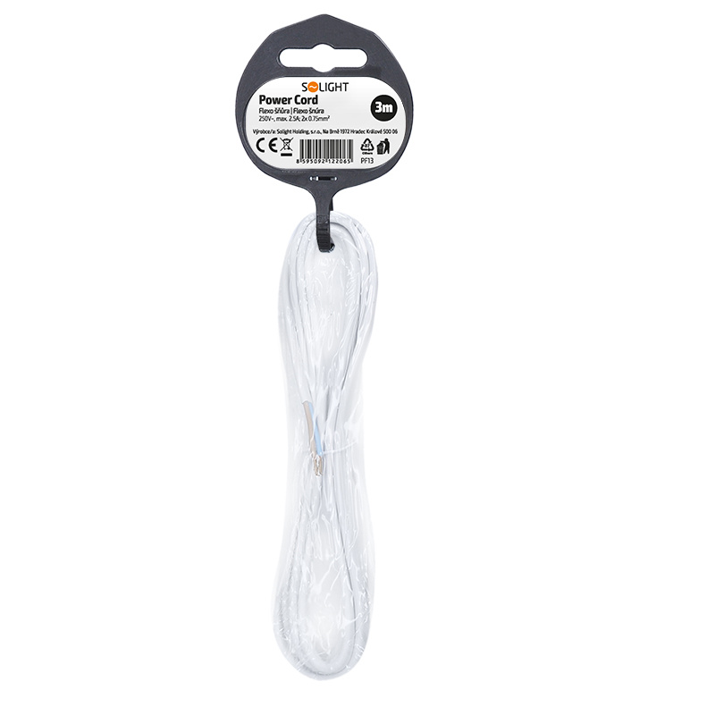 Solight flexo šňůra, 2x 0,75mm2, bílá, plochá, vypínač, 3m