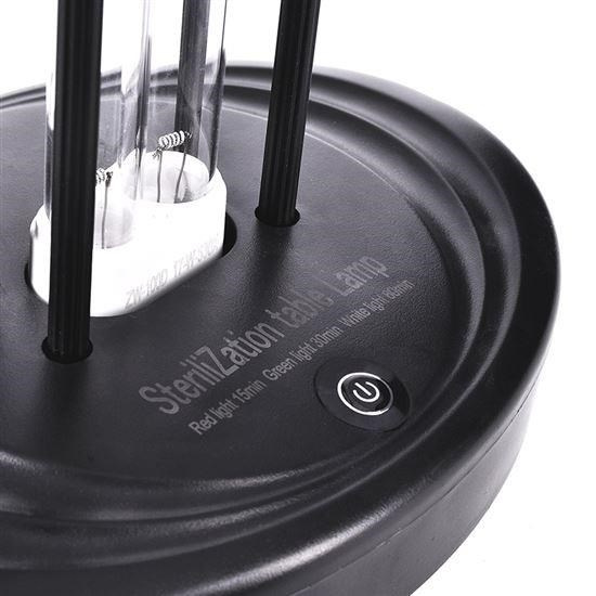 přenosná stolní lampa pro dezinfekci domácností, kanceláří, škol, chodeb, atd dezinfikuje vlivem UV-C záření inteligentní senzor, v případě přítomnosti lidí při dezinfekci se lampa sama vypne, následně se opět zapne velmi bezpečný a vysoce účinny způsob dezinfekce nezatěžuje životní prostředí a odpadové hospodářství použitými chemickými přípravky je až 3000x rychlejší než dezinfekce chlórem a 25x efektivnější než kyselina chloritá likviduje viry, plísně, bakterie, houby, hmyz. dezinfikovaná plocha: až 80m2 časovač 15/30/60min doporučená doba dezinfekce (časy jsou pouze orientační): místnost 40m2 - 15min místnost 50m2 - 30min místnost 80m2 - 60min vlnová délka 260nm, barva světla: modrofialová UV-C záření je zdraví nebezpečné, čtěte pozorně návod k použití doporučený interval pro dezinfekci: 1 - 3x týdně životnost zářiče: až 5000 hodin dosah dálkového ovládání: 20m materiál: křemíková trubice + ABS výkon zářiče: 100W napájení 230V/50Hz, délka přívodního kabelu 1,2m baterie dálkového ovládání: 1x CR2025 rozměry: 200x550mm hmotnost: 1,3 kg barva: černá.