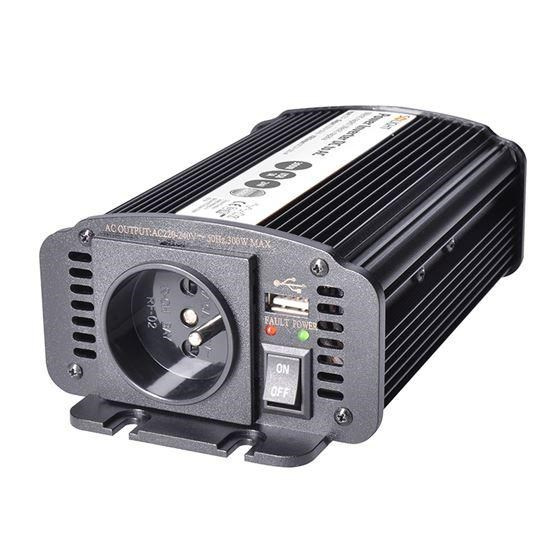 max. zatížení výstupu (stálé): 300W max. zatížení výstupu (ve špičce): 600W nominální vstupní napětí (DC): 12V nominální výstupní napětí (AC): 230V, 50Hz výstupní zvlnění má tvar modifikané sinusoidy napájení: DC 12V cigaretový autoadaptér (součástí balení) ochrana proti přehřátí, zkratům, přepětí, přetížení a vybití baterie pracovní teplota: -20°C až +50°C USB 2.0 nabíjecí výstup: 2100mA balení: barevná krabice.