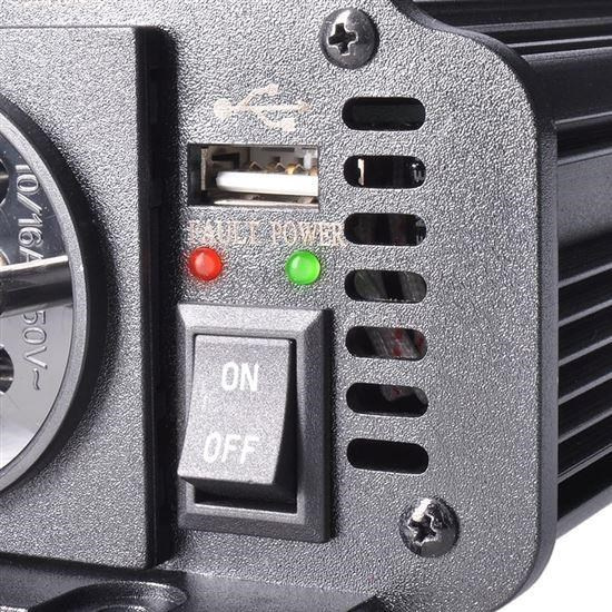 Solight invertor 12V, USB 500mA, kovový, černý, max. zatížení: 300W