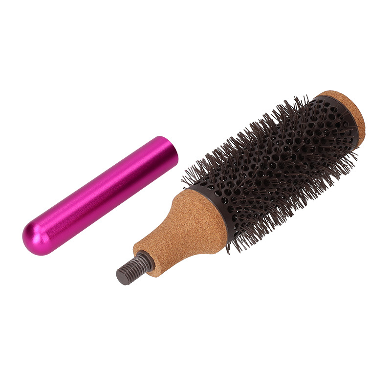 Kovové tělo s nylonovými štětinami pomáhá redukovat krepatění, dodává lesk a uzavírá vlasové kutikuly, takže vlasy mají hladkou a jemnou strukturu od kořínků ke konečkům.