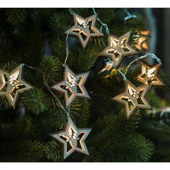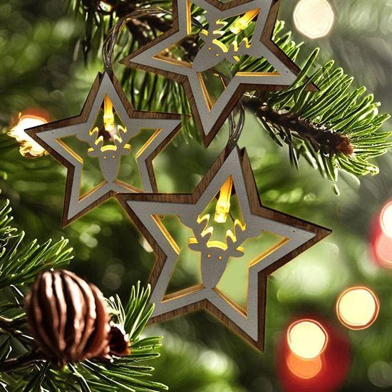 Vánoční dekorativní řetěz s dřevěnými hvězdami a LED diodami