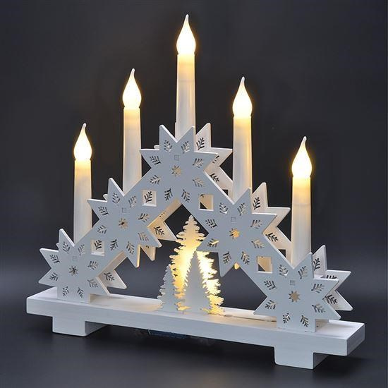 LED vánončí dřevěný svícen s dekorem hvězd