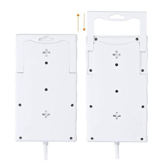 Robustní, dva metry dlouhý přívodní kabel poskytuje flexibilitu při umístění. Dvě oddělené zásuvky pojmou i větší napájecí adaptéry bez překážení ostatním zásuvkám. Výsuvný držák na zadní straně slouží k uspořádání kabelů, případně k zavěšení nebo přenášení. Nechybí ani montážní otvory pro pevné uchycení.