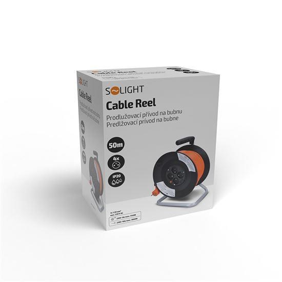 Solight prodlužovací přívod na bubnu, 4 zásuvky, 50m, oranžový kabel, 3x 1,5mm2