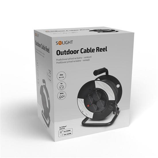 Solight prodlužovací přívod na bubnu, 4 zásuvky, venkovní, 25m gumový kabel, 3x 1,5mm2, IP44