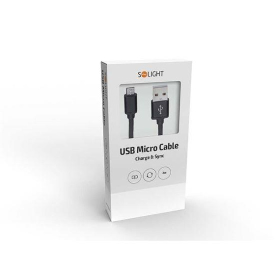 Solight USB kabel, USB 2.0 A konektor - USB B micro konektor, blistr, 2m