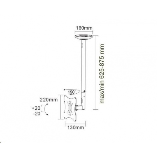 Technické údaje: maximální zatížení 30kg na LCD plazma LED televizory a monitory doporučená úhlopříčka obrazovky 22" až 42" VESA standard 75x75 až 200x200 otočný do stran +90° / -90° náklon obrazovky +20° / -20° nastavitelná délka držáku od 625mm do 875mm systém skrytého vedení kabeláže kvalitní, bezpečná a pevná konstrukce barva černá záruka 2 roky VESA 75x75 VESA 100x100 VESA 200x100 VESA 200x200.