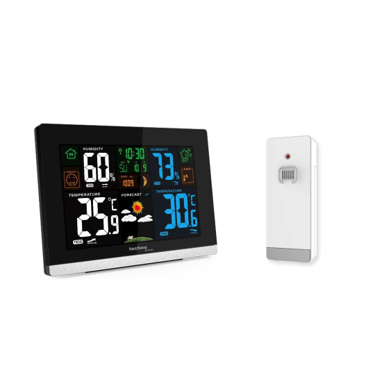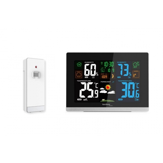 Barevný inverzní LED displej, čas řízený rádiovým signálem DCF-77, budík s funkcí opakovaného buzení (Snooze), zobrazení absolutního barometrického tlaku, zobrazení hodnot vnitřní a vnější teploty a relativní vlhkosti, možnost zobrazení teploty ve °F, nebo ve °C.... více