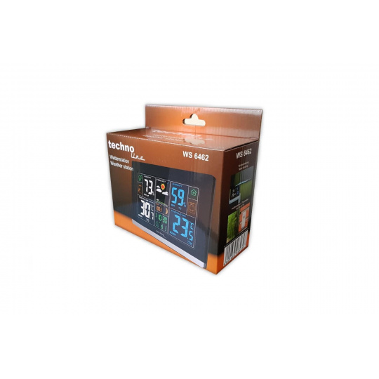 • barvy displeje: čas, datum zelená, barometrický tlak oranžová, vnitřní teplota a relativní vlhkost bílá, venkovní teplota a relativní vlhkost modrá