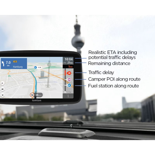Seznamte se s druhou generací TomTom GO Camper Tour, navrženou speciálně pro milovníky karavaningu. Užijte si přizpůsobené trasy, body zájmu a špičkové mapy TomTom s integrovanou dopravní službou TomTom Traffic.
