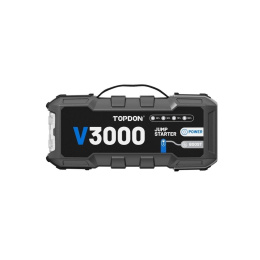 Startovací zdroj TOPDON V3000 je výkonově silný startovací booster a powerbanka v jednom je navržen pro náročné podmínky a vozidla s 12 V systémem (osobní auta, SUV, pick-upy, menší nákladní vozidla). Disponuje špičkovým proudem až 3000 A, díky čemuž spolehlivě nastartuje benzínové motory až 9,0 l a naftové až 7,0 l.