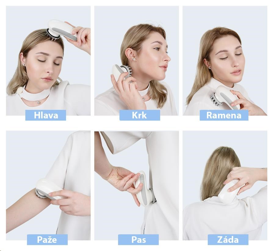 Dvě masážní hlavice (normální a měkká) jsou vhodné pro masáž obličeje. Zlepšují krevní oběh, odstraňují únavu a zpevňují pokožku.
