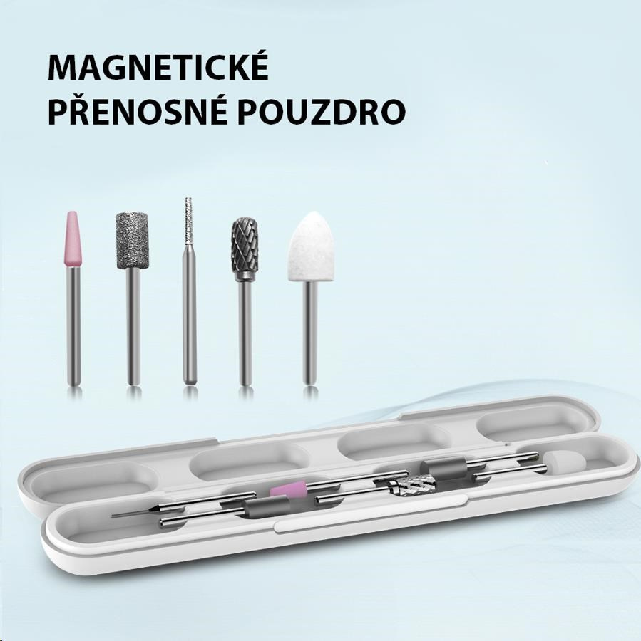 Sada na manikúru a pedikúru, 6 nástavců, plynule nastavitelná rychlost, obousměrná 360° rotace, výkonný motor s až 12 000 ot./min., magnetické pouzdro na příslušenství, baterie 800 mAh, USB-C kabel.... více