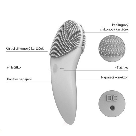 • Měkký povrch silikonového kartáče, šetrný k pokožce.