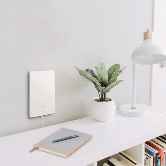 - Ultratenký a minimalistický design: Má kompaktní rozměry 210×148×8 mm a je ještě tenčí než zásuvka ve zdi. Lepší integrace s moderními interiéry domů.