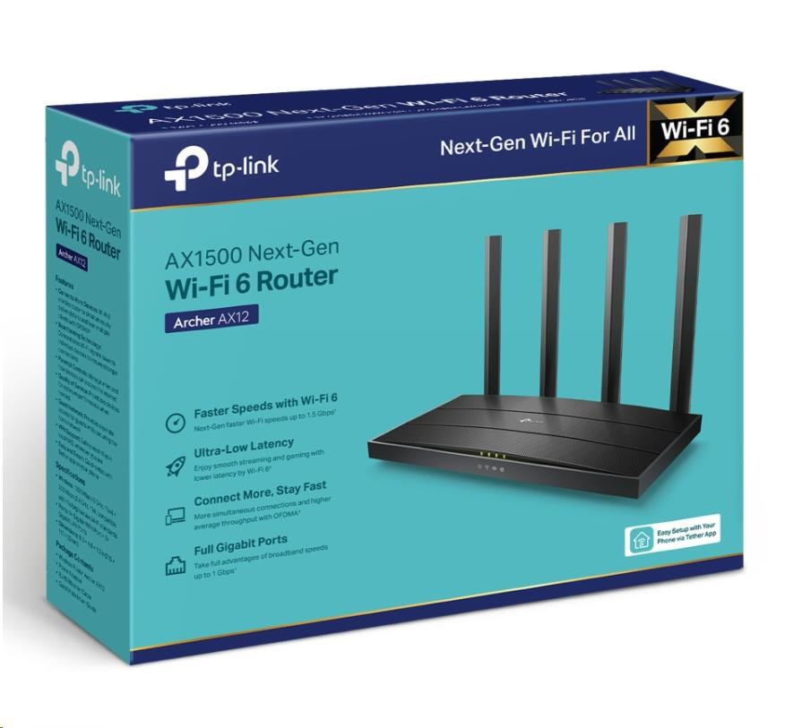 - Zpětně kompatibilní: Archer AX12 podporuje všechny předchozí standardy 802.11 a všechna zařízení WiFi.