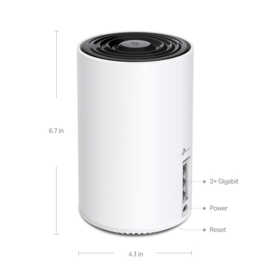 | WiFi Range | 1-3 Bedroom Houses (1-pack) TP-Link Mesh Technology Optional Ethernet backhaul work together to link Deco units to provide seamless coverage AI-Driven Mesh Intelligently learns the network environment to provide ideal Wi-Fi unique to your home 4× High-Gain Antennas (Internal) Multiple antennas form a signal-boosting array to cover more directions and large areas Tri-Band A newly-opened 6 GHz band brings more bandwidth and faster speeds Beamforming Concentrates wireless signal strength towards clients to expand WiFi range |