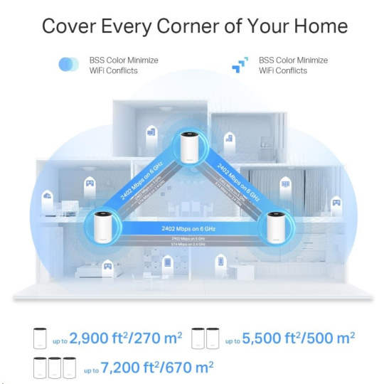 • Wi-Fi 6E pokrytí celé domácnosti – pokryjte plochu až 670 m2 ničím nerušeným Wi-Fi signálem příští generace a zapomeňte na mrtvé zóny pokrytí a načítání do vyrovnávací paměti