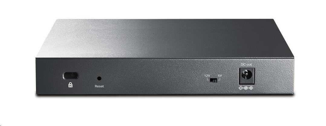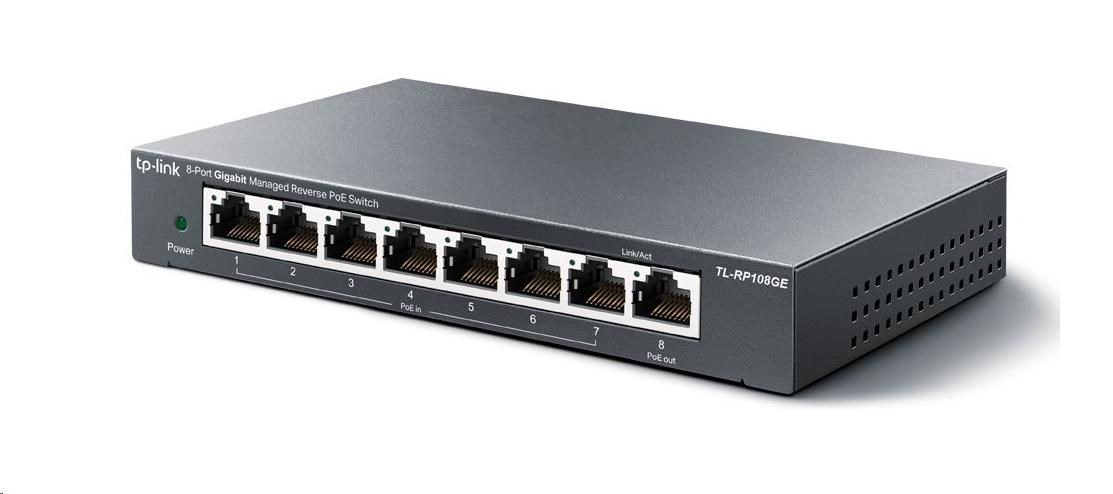 Pasivní PoE switch RP108GE (TL-RP108GE) má sedm gigabitových PoE vstupních portů, které umožňují získávat elektrickou energii z uživatelských zásuvek pomocí PoE injektorů. Vybaven jedním PoE výstupním portem může switch napájet CPE nebo podobné zařízení pomocí Portu 8. Výstupní DC port podporuje obě napětí 5 V a 12 V a lze jej tak použít k napájení zažízení jako ONT. Díky integraci přepínání dat a PoE napájení do jednoho zařízení, RP108GE šetří místo, minimalizuje množství kabelů a eliminuje potřebu vyhrazené elektrické zásuvky - snižuje tak náklady na instalaci a zjednodušuje instalaci PoE zařízení.