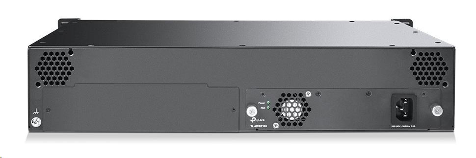 14slotové rackové šasi TL-FC1420 je speciálně určeno pro usazení 14 média konvertorů od společnosti TP-Link pro zajištění centrálního napájení, čímž šetří místo a napájecí kabely. Nepřetržitý provoz je pro komunikaci přes optické vedení velmi důležitý, proto je šasi vybaveno volitelným redundantním napájecím zdrojem a funkcí výměny za provozu, které umožňují instalaci / odebrání konvertoru bez vypnutí napájení šasi. Pro stabilizaci provozního výkonu a prodloužení životnosti jsou navíc uvnitř instalovány dva chladicí větráky. Společně s řadou FC média konvertorů Gigabit / Fast Ethernet představuje zařízení TL-FC1420 ideální řešení pro vaši síť vyžadující převod médií. * Zařízení TL-FC1420 podporuje TP-Link média konvertory TL-FCXXX verze 1.0 a vyšší. ** TL-MCRP100 V2 lze použít jako redundantní napájecí modul v šasi TL-FC1420.