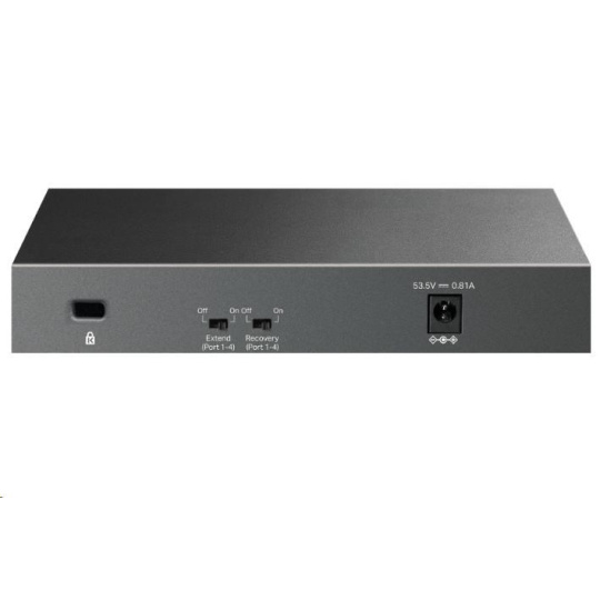 | Advanced Features | • Extend Mode Button (Ports 1–4, Up to 250 m PoE power supply and data transmission) • PoE Auto Recovery Button (Ports 1-4) • Compatible With IEEE 802.3af/at Compliant PDs • Mac Address Auto-Learning and Auto-Aging • IEEE 802.3x Flow Control • Green Technology |