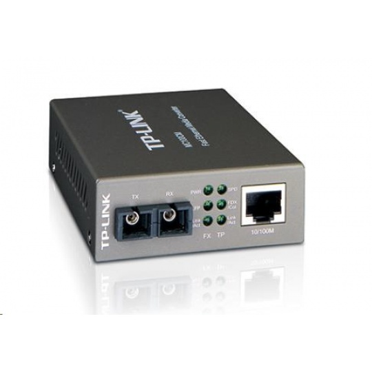 MC100CM je média konvertor určený k převodu médií z optického vedení 100BASE-FX na metalické vedení 100Base-TX a naopak. Média konvertor MC100CM, který byl navržen podle standardů IEEE 802.3u 10/100Base-TX a 100Base-FX, je určen pro použití s vícevidovým (multi-mode, MM) optickým kabelem s konektorem typu SC. Média konvertor MC100CM podporuje specifikaci dlouhovlnného laseru (LX) při maximální rychlosti přeposílání paketů. Využívá vlnovou délku 1 310 nm u příjmu i odesílání dat. Mezi další funkce tohoto modulu patří možnost použití jako samostatného zařízení (nevyžaduje žádné šasi) nebo v šasi TP-Link TL-MC1400, automatická detekce MDI/MDI-X pro port TX, automatické vyjednávání duplexního režimu na portu TX a stavové LED kontrolky na čelním panelu. Zařízení MC100CM podporuje přenos dat pomocí vícevidového (mutli-mode, MM) optického kabelu na vzdálenost až 2 km.