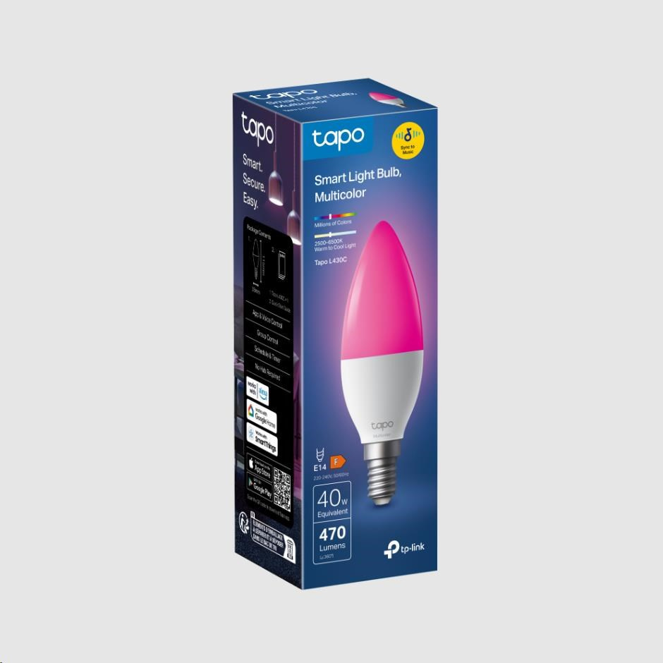 TP-Link Tapo L430C chytrá WiFi stmívatelná LED žárovka (barevná,2500K-6500K,470lm,2,4GHz,E14)
