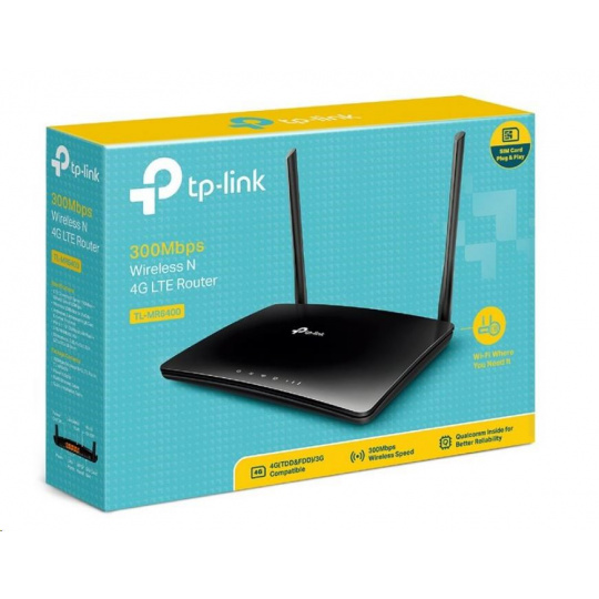 TP-Link TL-MR6400 WiFi4 router (N300, 4G LTE, 2,4GHz, 3x100Mb/s LAN, 1x100Mb/s LAN/WAN, 1xmicroSIM)