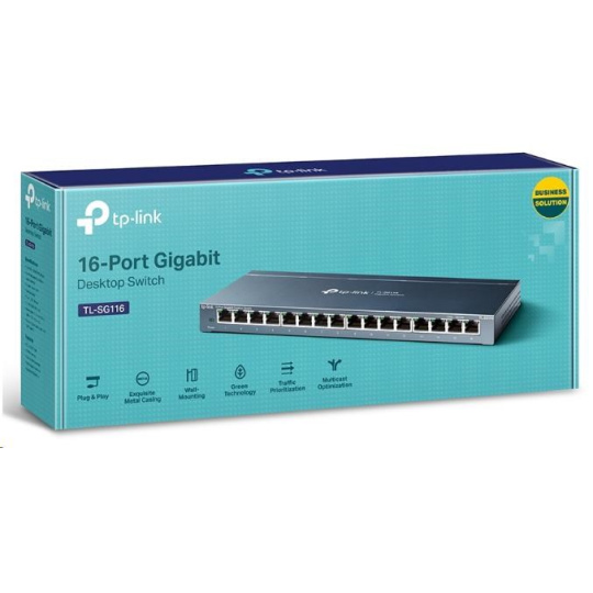 Stolní switch TL-SG116 představuje snadný způsob, jak zvýšit rychlost vašeho síťového serveru a páteřních připojení. Ať pracujete z domu nebo z kanceláře, switch TL-SG116 vám vždy pomůže rychle a snadno vyřešit obchodní potřeby.