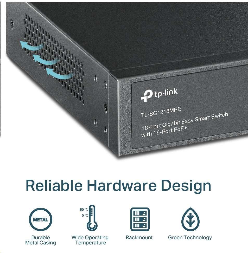 TP-Link CCTV Easy Smart switch TL-SG1218MPE (16xGbE, 2xGbE/2xSFP combo, 16xPoE+, 250W)